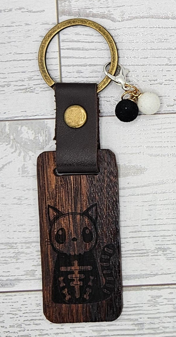 Add a touch of personality to your keys or bag with these handcrafted wooden keychains. Each piece is laser engraved with unique designs—ranging from playful and quirky to inspiring and bold—and paired with a sturdy leather strap and antique brass hardware for a rustic, timeless look.
