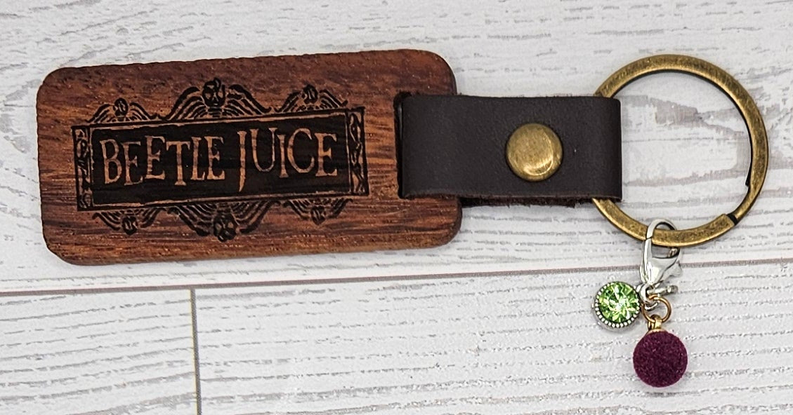 Add a touch of personality to your keys or bag with these handcrafted wooden keychains. Each piece is laser engraved with unique designs—ranging from playful and quirky to inspiring and bold—and paired with a sturdy leather strap and antique brass hardware for a rustic, timeless look.